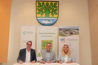 Am 2. September 2025 wurde eine Kooperationsvereinbarung zwischen der Gemeinde Kolkwitz, der EGC Cottbus und der CIT Spree-Neiße im Kolkwitzer Rathaus unterzeichnet. Hintergrund ist eine Vernetzung von Wirtschaft, Wissenschaft, Politik und Verwaltung, um den Strukturwandel erfolgreich zu gestalten. Karsten Schreiber erklärte: Ich freue mich sehr über diesen Schulterschluss, da wir so unsere Stärken bündeln können, um für die Region und die Bürger das Beste herauszuholen“. DIE CIT ist die Wirtschaftsförderungsgesellschaft des Landkreises Spree-Neiße und die EGC die Wirtschaftsförderungsgesellschaft der Stadt Cottbus. Foto: Unterzeichnet haben den Kooperationsvertrag v.l.: Tim Berndt (Geschäftsführer EGC), der Bürgermeister Karsten Schreiber und Heike Gensing (Geschäftsführerin CIT).