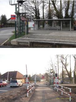 Oberes Bild: Ausgang zur Bahnhofstraße Unteres Bild: Fahrradweg: Im Hintergrund die ehemalige Bäckerei Schulze