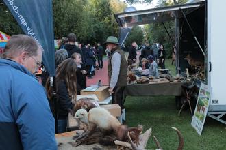 Herr Wellermann mit seinem Waldmobil lenkte wie der Kleintierzuchtverein nebenan wieder zahlreiche neugierige Blicke auf sich.