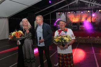 Zum Jubiläum bekamen Marion Hirche als Moderatorin und Roland Jainz als DJ für ihre langjährige tolle Unterstützung des Festes ein großes Dankeschön des Bürgermeisters Karsten Schreiber sowie einen Blumenstrauß.