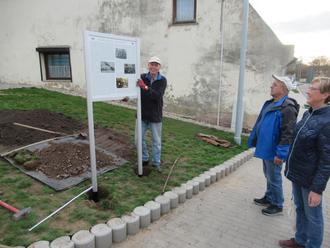 Doris und Gerd Laue sowie Martin Ködelpeter beim Errichten der Tafel