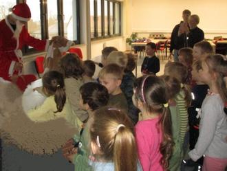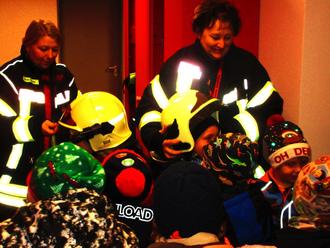 Dann gab es ein großes Hallo! Der Weihnachtsmann kam mit dem Leiterwagen der Feuerwehr und stieg doch tatsächlich zum Fenster herein. Alle waren vor Begeisterung total aus dem Häuschen und freuten sich riesig über die süße Überraschung, die der Weihnachtsmann für jedes Kind mitgebracht hatte.