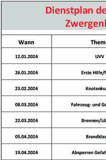 Nichtteilnahme ist spätestens 24 Stunden vor dem Dienst kundzugeben. Änderungen vorbehalten