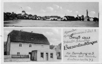 Postkarte mit „Gruß aus Beesenlaublingen“, verschickt im Jahr 1940 von Helmut Schindler (Archiv Heimatverein Beesenlaublingen e. V.)