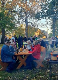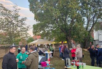 Bei Punsch, alkoholfreien Getränken, Sekt, Bier, Wein und Gegrilltem wurde erzählt, gelacht und Neuigkeiten ausgetauscht. Wie es sich für ein Herbstfest gehört, gab es viele Anstöße, was man alles aus dem Garten für den Winter verarbeiten kann. Quitten und Kürbis standen hoch im Kurs.