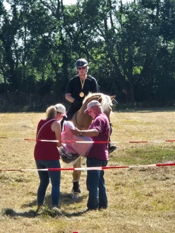 Den 2. Platz teilten sich Tino Meyer mit No Mercy vom Reitverein Pferdefreunde Poplitz und Michael Haupt mit Engie vom Reitverein Am Schloßhof Poplitz.