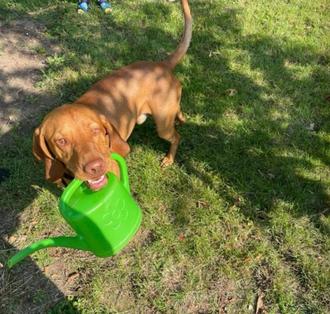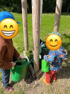 Seit dem wurde fleißig gegossen. An heißen Tagen gibt es „Extraparkwichtelwasser“, damit es den Bäumen gut geht. Dabei hilft sogar Pablo der Wichtelhund und trägt auch eine Kanne, so dass in diesem Jahr bei den Ulmen an der Baumspitze viel frisches Grün gewachsen ist.