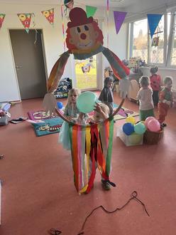 Die Kinder wurden mit kleinen Höhepunkte, wie Dosenwerfen, selbst gebastelten Konfettikanonen und Raketen, sowie einer Foto Ecke, Limbo, Stuhltanz und Zielwerfen von den Erzieherinnen überrascht.
