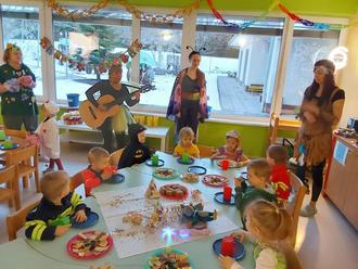 Ein fröhlicher Morgenkreis mit viel Spiel, Musik und Gesang rundete den gelungenen Vormittag ab. Kinder und Erzieherinnen hatten gemeinsam sehr viel Spaß und genossen die närrische Zeit. Das musikalische Highlight war das Lied „Gute Laune“.
