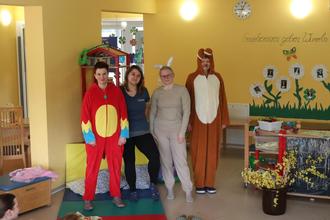 Nicht nur der Osterhase war da und hat etwas versteckt. Die Erzieher spielten für die Kinder das Theaterstück von „ Stups dem kleinen Osterhasen.