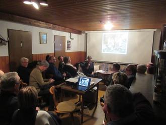 Herike Hilbert nahm die 51 Zuhörer auf eine Reise in die Vergangenheit mit und berichtete von der weitverzweigten Familie ihrer Großmutter Else Reinicke. Ihr Ur-Ur-Großvater Carl Heinrich Reinicke kam vor 200 Jahren als Königlich Preußischer Gendarm in das damalige Beesen. Die Reinickes verbanden sich mit zahlreichen ortsansässigen Familien. Namen wie Böttcher, Schnitzker, Polkehn, Ernst, Bestehorn u. a. tauchen auf. Viele alte Bilder begleiteten den Vortrag.
