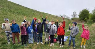 Am Donnerstag machten die einen Ausflug zur Nelbener Grund. Dort konnte jedes Kind ein buntes Ei den Berg hinunterrollen lassen. Es wurde gelacht und gejubelt und am liebsten hätten die Kinder gar nicht aufgehört.