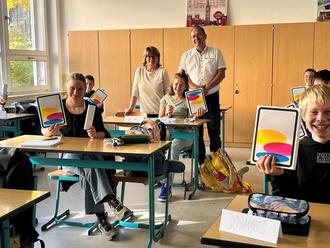 Eine freudige Nachricht erreicht die Schülerinnen und Schüler der neuen 8. Klassen der Oberschule sowie des Gymnasiums des Sportcampus Klingenthal: Kürzlich durften sie sich über eine großzügige Ausstattung mit Tablets freuen. Überreicht wurden die Geräte von Oberbürgermeisterin Judith Sandner und ihrem Stellvertreter Carsten Förster. Die Tablets sollen den Unterricht modernisieren, den Zugang zu digitalen Lernmaterialien erleichtern und die Kompetenzen der Schülerinnen und Schüler im Umgang mit neuen Medien stärken. Oberbürgermeisterin Judith Sandner betonte bei der Übergabe die Bedeutung der digitalen Bildung für die Zukunft der jungen Generation: „Wir investieren in moderne Lernmöglichkeiten, damit unsere Schülerinnen und Schüler bestens für die Anforderungen von Schule, Ausbildung und Beruf gerüstet sind.“ Mit der Tablet-Ausstattung setzt der Sportcampus Klingenthal ein starkes Zeichen für moderne Bildung, Chancengleichheit und innovative Lernformen. Eine Investition, von der die gesamte Schulgemeinschaft profitiert und die Schülerinnen und Schüler optimal auf ihren Lernweg vorbereitet.