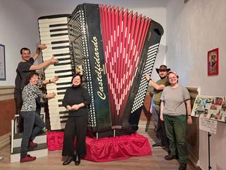 Das dortige Akkordeonmuseum haben wir uns mit neugierigem Interesse angeschaut und dem weltgrößten spielbaren Akkordeon mit größter Spiellust den Gruß aus Klingenthal entlockt. Am Mittwoch fand unser Konzert im Rathaussaal von Castelfidardo statt. Mit großem Respekt haben wir uns darauf vorbereitet. Das hieß für uns auch, vor Ort zu proben. Ruben Cittadini, der Kulturbeauftragte der Stadt hat uns herzlich im Wappensaal des Rathauses empfangen. Dieser Saal zeichnet sich durch eine besondere Akkustik aus. Während des Konzertes gab es herzliche Grußworte des Bürgermeisters Roberto Ascani, die Stimmung war sehr aufgelockert und am Ende war ehrlicher und stürmischer Beifall unser Lohn. Ohne Zugabe und Tanzeinlage hat man uns nicht fortlassen wollen. Den Abend haben wir dann alle gemeinsam im dortigen Pub bei Herbert gemütlich ausklingen lassen. Nach diesen wenigen, aber intensiven Tagen der Begegnungen sind wir herzlich mit dem Versprechen auseinander gegangen, einander bald wieder zu besuchen. Das Akkordeon wurde zum Botschafter zwischen unseren beiden Städten.