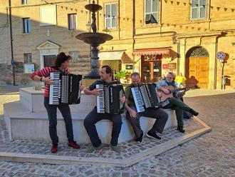 Nach 12 Stunden Fahrt kamen wir etwas müde aber voller Vorfreude in Castelfidardo an. Nachdem wir unsere sonnige Unterkunft in Beschlag genommen hatten, gab es erst einmal frische Pasta. Und nach kurzer Erholungsphase und in den Pool hüpfen, haben wir auch gleich mit dem Kulturprogramm begonnen. Die Region der Marken ist geprägt von sanftem Hügelland bis hin zum türkis schimmernden Meer. Hier wachsen Olivenbäume und Weinreben. Den regionalen Verdicchiowein bekommt man zu jeder Mahlzeit gereicht. Orte wie Cingoli und Torre del Palme laden ein, den Blick in die Ferne schweifen zu lassen und Osimo wartet mit beeindruckender Architektur und Geschichte, die auch unter die Erde geht, auf. Die Frasassigrotten ganz in der Nähe beeindrucken durch ihre Größe und ihre reichhaltige Schönheit. Aber in Castelfidardo selbst waren es die Begegnungen mit den Menschen, die unseren Aufenthalt zu etwas Besonderem haben werden lassen. Wieder einmal ist es die Musik, die es vermag Brücken zu schlagen und Herzen zu öffnen. Mit ein bisschen Straßenmusik und ein paar Brocken Italienisch sind wir eingetaucht in das Pulsieren der Stadt Castelfidardo. Wir sind ins Gespräch gekommen... Was wäre, wenn nun aus Fremden Freunde werden?
