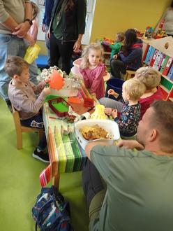 Im Vorfeld wurde in den einzelnen Gruppen viel zum Thema Herbst beobachtet und gelernt. Wir unternahmen Wanderungen, wobei uns die Veränderungen in der Natur deutlich auffielen. Dabei sammelten wir vielfältiges Naturmaterial, wie bunte Blätter, Kastanien und Eicheln, um damit zu basteln. Wir bekamen Äpfel, Birnen und sogar zwei Kürbisse geschenkt, die wir zu Leckeren Speisen verarbeiteten.