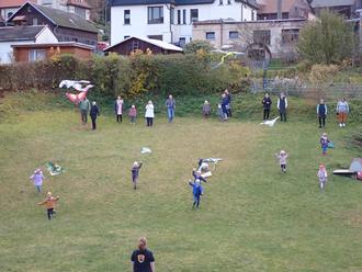 So konnten wir gut vorbereitet unser Fest mit einem Herbstlied beginnen. Anschließend gab es in unseren Gruppenzimmern verschiedene Bastelstationen, an denen unsere kleinen Künstler ihre Kreativität entfalten konnten. Dabei entstanden lustige Blätterwichtel, Laternen und „Kastanienbilder“ - indem wir Kastanien durch Farbkleckse übers Papier rollen ließen. Besonders viel Spaß machte die Schatzsuche zwischen den Muggelsteinen. Um unser Kneipp-Konzept auch an diesem Tag zu präsentieren, gab es zwischendurch entspannende Yogageschichten und einen Barfußpfad aus Kastanien. Da sich nun auch das Herbstwetter von seiner besten Seite zeigte, konnten sich auf unserem Spielplatz sogar noch einige im Drachensteigen versuchen.