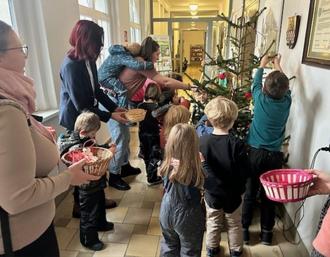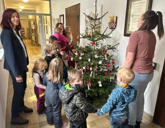 Pünktlich am 1.12.2025 schmückte dieses Jahr die Arbeitsgruppe des „Ev. Kindergartens Zum Friedefürsten“ den Weihnachtsbaum im Rathaus Klingenthal.