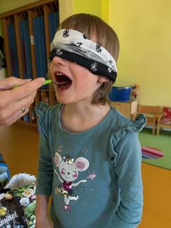 Es ist wiedermal Freitag zwar der 13.03. doch das war uns egal, denn Frau Brunner und Micky kamen wieder zu Besuch. An diesem Tag mussten wir ganz viele Geheimnisse für uns behalten vor allem mussten wir mutig sein. Wir haben gelernt, dass unser Körper ganz viele verschiedene Sinne hat und diese wollten wir natürlich testen. Deshalb hat uns Micky verschiedene Fühlboxen und Geruchsgläßer mitgebracht. Erst durften wir mit den Händen fühlen und anschließend mit der Nase riechen aber eins durfte nicht fehlen, mit dem Mund schmecken. Wusstet ihr eigentlich das man Essen auch hören kann? Probierts mal aus ... beißt in eine Möhre und haltet euch mal ein Ohr zu und schon könnt ihr Essen hören. Nach dem wir wieder viel gelernt und experimentiert haben ging es dann auch endlich ans kochen. Es gab leckere Dinkel Spaghetti mit selbstgemachter Bolognese mmmh ... das war lecker! Wir sind schon ganz gespannt was uns das nächste Mal erwartet, denn dafür haben wir eine kleine Hausaufgabe bekommen. Doch die verraten wir erstmal nicht denn auch ihr sollt gespannt sein. Also bis zum nächsten Mal sagen die Erdmännchen vom Kinderhaus Sonnenschein.