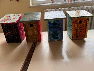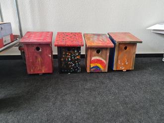 Es wurden verschiedene Farben benutzt und am Ende sind 8 einzigartige Nistkästen entstanden.
