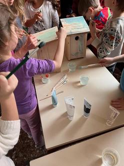 Unsere Idee bestand darin, in kleinen Gruppen die Nistkästen anzumalen und gemeinsam Zeit zu Verbringen.