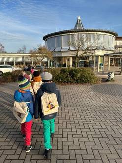 Einmal im Monat machen sich die großen Füchse unserer Kita auf den Weg zur Stadtbibliothek Landsberg – ein Ausflug, auf den sich die Kinder jedes Mal besonders freuen. Schon die gemeinsame Fahrt mit öffentlichen Verkehrsmitteln ist für die Gruppe ein kleines Highlight, und der kurze Fußweg zur Bibliothek wird begeistert gemeistert.
