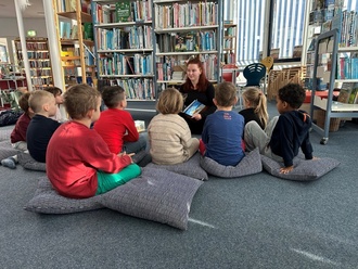 Vor jedem Besuch werden die Themen mit Frau Vogel und Frau Lesinski abgestimmt und anschließend sorgfältig und kindgerecht vorbereitet. Mit Bildern über den Beamer, kleinen medienpädagogischen Elementen, Musik und stimmungsvollem Licht entsteht eine Atmosphäre, die zum Zuhören, Staunen und Mitmachen einlädt. Große Kissen schaffen zusätzlichen Komfort und machen die Vorlesestunden zu einem besonderen Erlebnis.