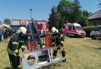 Die Kameradinnen und Kameraden ließen es sich nicht nehmen, einen Einblick in die damalige Arbeit der Feuerwehr Spickendorf zu erlangen. Dies gelang innerhalb einer Spaßvorführung.