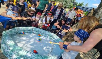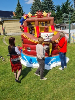 Am 7. Juni 2024 war es endlich so weit. Nach langer Vorbereitung mit dem fleißigen Erzieherteam und einigen Elternhäusern konnte in unserer Kita “Pusteblume” in Landsberg ein wunderbares und unvergessliches Piratenfest auf dem toll dekorierten Kitagelände gefeiert werden. Zu Beginn tanzten die Piraten und Piratinnen zum warm werden ihren coolen Piratentanz, mit Drehen, Hüpfen und Stampfen, damit wir mit den Piratenwettkämpfen starten konnten. Auf dem Kitagelände warteten Stationen wie Kanonen schießen, Schiffe versenken, Holzbeinlauf und viele andere coole Überraschungsaufgaben für unsere Gäste. Nicht zu vergessen ist die große Piratenhüpfburg, die an diesem Nachmittag super gut besucht war. Auch einen Schatz gab es in unserer großen Sandkiste zu finden. Da funkelten nicht nur die gefundenen Edelsteine, sondern auch die Augen der Kinder. Selbst nach unserem Fest wurde der ein oder andere Edelstein noch gefunden.