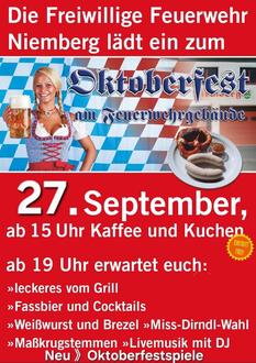 so. Es erwartet euch eine Wahl zur Miss Dirndl und ein Maßkrug-Stemmen. Die Feuerwehr Niemberg freut sich auf viele gut gelaunte Gäste!