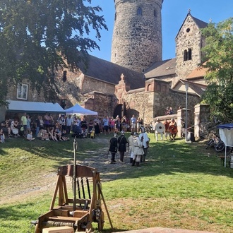 „Ich bin schon so oft auf der B100 an Hohenthurm vorbeigefahren und habe es noch nie geschafft, mir den Turm und die Kirche anzusehen. Heute hat es mal geklappt.“ Diese oder ähnliche Worte waren am 10.09.2023 zum Tag des offenen Denkmals am Fuß des „Hohen Turmes“ häufig zu hören. Fast 300 Besucher haben sich nicht durch die Bauarbeiten im Ortskern und dem heißen Wetter abschrecken lassen und haben den Weg zum Turm und zur Kirche gefunden. Und viele sind auch noch die 104 Stufen bis zur Aussichtsplattform hochgekraxelt, um den Blick ins Umland zu genießen. Anschließend dann das wohlverdiente Ausruhen bei Getränken, Gegrilltem oder Kaffee und Kuchen; den Darbietungen unserer Ritter- und Mittelalterdarsteller zusehen, mit Bekannten schwatzen, Neuigkeiten zum Turm erfahren und anschließend noch das Chorkonzert in der Kirche besuchen. Es war wieder ein gelungener Tag und für jeden war etwas dabei.