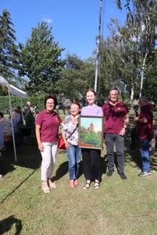 Das kulturelle Leben im Ort stärker zu aktivieren sowie die heimatliche Geschichte zu ergründen und einer breiten Öffentlichkeit näherzubringen. Diesem Vereinszweck folgend, konnten wir am 10.08.2024 eine neue Ausstellung im Gemeindezentrum Hohenthurm eröffnen. Inhalt der Ausstellung ist ein Streifzug in Text, Bildern und Exponaten durch die Geschichte des Schlosses Hohenthurm als Sitz des Grafen von Wuthenau hin zu einem Zentrum der Pflanzenzüchtung. Vereinsmitglied Wolfram Schmalz übernahm die Erinnerungen seines Vaters, Prof. Dr. Hellmut Schmalz, dem langjährigen Leiter des Instituts für Pflanzenzüchtung in Hohenthurm, erweiterte diese enorm und war maßgeblich an dem Konzept der Ausstellung beteiligt. Bei herrlichem Sonnenschein fanden viele Hohenthurmer, Gäste aus dem Umland und vor allem eine Vielzahl an ehemaligen Mitarbeitern den Weg zum Gemeindezentrum. Unser Verein war gut vorbereitet und hatte für das leibliche Wohl mit reichlich Kaffee, Kuchen und Getränken vorgesorgt. Eine Vielzahl an Fotos brachte Erinnerungen an zurückliegende Zeiten, ehemalige Mitarbeiter und Fachkollegen zurück. Besonders gefreut haben wir uns über ein Geschenk der Familie Renner aus Halle. Frau Renner und Enkelin übergaben dem Verein ein Gemälde von Turm und Kirche aus den 20-ger Jahren aus Familienbesitz. Mit diesem Geschenk kann unsere Sammlung von Ortsansichten wieder erweitert werden. An dieser Stelle recht herzlichen Dank an Familie Renner. Für all diejenigen, welche die Ausstellung an diesem Tag nicht besichtigen konnten; die Ausstellung wird noch nicht abgebaut und kann nach Voranmeldung auch zu einem späteren Zeitpunkt besichtigt werden. Wir bedanken uns an dieser Stelle ganz herzlich bei den fleißigen Helfern beim Auf- und Abbau, den Kuchenbäckern und denjenigen Vereinsmitgliedern, die dafür gesorgt haben, dass Kaffee, Kuchen und Getränke schnell den Besitzer wechseln konnten.