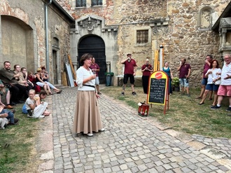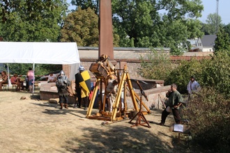 Zum traditionell bunten Programm rund um den hohen Turm gehörte weiterhin das Ritterlager. Viele Kinder und Eltern nahmen das Angebot gerne an, in das mittelalterliche Leben einzutauchen und zu sehen, wie man zu der damaligen Zeit so lebte und arbeitete. Ein zünftiger Angriff auf die Burg, unterstützt mit schweren Wurfgeräten und eine mehr oder weniger erfolgreiche Verteidigung waren zweifellos ein Höhepunkt.