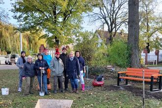 Am 18. November startete eine große Gemeinschaftsaktion in allen vier Peißner Ortsteilen, initiiert vom Heimatverein Peissen. Viele aus der Bürgerschaft folgten dem Aufruf und so starteten wir um 10 Uhr sowohl auf dem Sportplatz Peißen, als auch auf dem in Zöberitz. Es war Einiges geplant und dies erforderte wirklich viele helfende Hände. Ziel war es, zwei Bänke und zwei Fahrradständer in Zöberitz zu setzen, 5000 Frühblüher in allen vier Ortsteilen zu pflanzen und den Ballfangzaun in Peißen zu streichen. Außerdem sollten am Hallerain drei Obstbäume gepflanzt werden und ein, von den Kindern bereits in einer vorigen Aktion gestaltetes, Hüpfspiel war in Zöberitz noch zu setzen. Also alles in allem eine Menge zu tun. Das Wetter war gnädig und es gab viele Teilnehmende, so dass wir alle Projekte an diesem Tag erfolgreich abschließen konnten. Natürlich durfte eine Stärkung im Anschluss nicht fehlen und so wurde gemeinsam gegrillt. Es war ein anstrengender, aber wirklich schöner, erfolgreicher Tag. Wir haben Sichtbares (Bänke, gestrichener Ballfangzaun, Bäume) geschaffen und so einiges versteckt (Frühblüher), wobei wir natürlich hoffen, dass uns ab jetzt jedes Frühjahr ein Meer an Blumen an unsere gemeinsame Aktion erinnern wird. Finanziert wurde die Gemeinschaftsaktion über die Landesarbeitsgemeinschaft der Freiwilligenagenturen Sachsen-Anhalt e.V. (LAGFA) und durch Spenden. Wir danken allen, die uns tatkräftig unterstützt haben und ein ganz besonderer Dank geht sowohl an die Baumschule O. Müller aus Wiedemar OT Grebehna für die drei gespendeten Obstbäume, als auch an den Globus Baumarkt in Braschwitz für die gespendete Farbe.