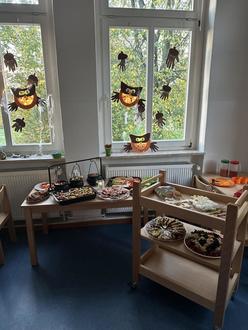 Die Eltern brachten allerlei schöne Snacks und Zaubertränke mit, die Energie und Zauberkraft für den Tag brachten. Es wurde getanzt, gespielt und gesungen. Fingerspiele und thematisch passende Basteleien schmückten unsere Kita.