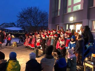 Unser Weihnachtskonzert am 14.12.2022 musste aufgrund der noch nicht fertiggestellten Turnhalle nun doch im Freien stattfinden. Aufgrund der frostigen Temperaturen verwandelten sich Bäume, Sträucher, Zäune und auch unser Schulhof in eine Winterlandschaft. Die Treppen des Hintereingangs und der Platz davor waren nun die Bühne. „Weihnachten im Winterwald“, so hieß das Theaterstück, welches mit passenden Tanzeinlagen und Weihnachtsliedern aufgeführt wurde: