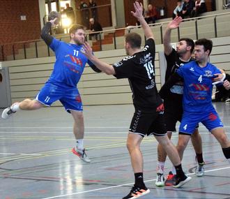 Mit einem Sieg gegen Staßfurt starteten die Landsberger Verbandsligahandballer erfolgreich in das Jahr 2023. Hier Maicel Romag beim Torwurf. Auch dabei mit der Nummer 4 der LHV-Neuzugang David Horche.