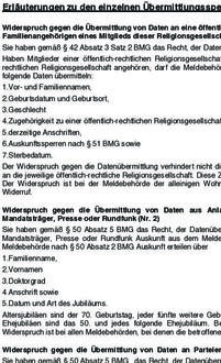Personen, die mit Hauptwohnsitz in der Stadt Landsberg gemeldet sind, haben ein Recht auf Widerspruch gegen die Übermittlung oder Veröffentlichung ihrer Daten. Dies ist schriftlich zu erklären und gilt bis auf Widerruf.