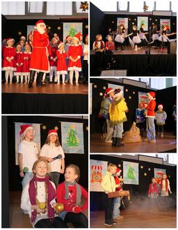 Am 10. Dezember 2025 lag ein besonderer Zauber in der Luft, als sich unsere Turnhalle mit erwartungsvollen Kindern, Eltern und Freunden füllte. Um 16 Uhr begann unser diesjähriges Weihnachtskonzert, das in diesem Jahr etwas ganz Besonderes bereithielt: Zum ersten Mal wurde ein Musical aufgeführt. „Der verschwundene Weihnachtszauber“ entführte das Publikum in eine magische Welt, in der Mila und Kim, zwei Kinder, auf dem Weihnachtsmarkt eine geheimnisvolle goldene Perle finden. Was als scheinbar langweiliger Tag beginnt, wird für die beiden zu einem Abenteuer, das sie direkt zum Weihnachtsmann und seinen fröhlichen Wichteln führt. Doch der Weihnachtszauber ist verschwunden! Gemeinsam mit dem Publikum machen sich Mila und Kim auf die Suche und stehen vor einer Aufgabe, die sie nur zusammen lösen können.
