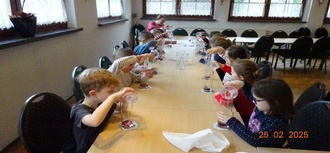 Frau S. Thormann hatte für jedes Kind an einer langen Tafel schon Gläser, Messbecher und die Zutaten bereitgestellt. Unter ihrer Anleitung mischten die Kinder IHRE Brause zusammen. Natürlich wurde sie danach gekostet.