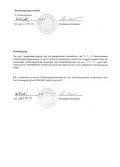 Die für eine Bestattung erforderlichen Unterlagen müssen spätestens 3 Tage vor der Bestattung bei der Friedhofsverwaltung vorliegen.