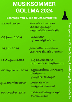 Sonntag, 12.05. | 17:00 Uhr |Musiksommer Gollma | Konzert Orgel, Violine und Cello | E. Leontjewa
