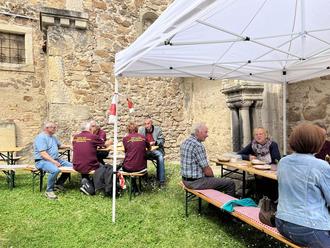 Am 04.05.2024 konnten unsere Gäste dann doch noch die Aussicht vom Hohen Turm auf teilweise blühende Rapsfelder genießen. Wieder unten angekommen, freuten sich alle auf Kaffee und viele leckere Kuchen, da fiel die Auswahl schwer. Seit vielen Jahren schon ist das „Rapsblütegucken“ eine willkommene Gelegenheit gemütlich beisammen zu sitzen und zu plauschen. Besonders hat uns gefreut, dass auch zukünftige Hohenthurmer die Gelegenheit nutzten, um Kontakte zu knüpfen und sich über die Arbeit des Kultur- und Heimatgeschichtsvereines zu informieren.