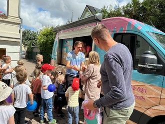 Besonders nachhaltig war die besondere Überraschung für alle Kinder unserer Kita. Es gab Besuch von einem Eiswagen, organisiert durch die Eltern und den Elternverein. Strahlende Kinderaugen waren garantiert.