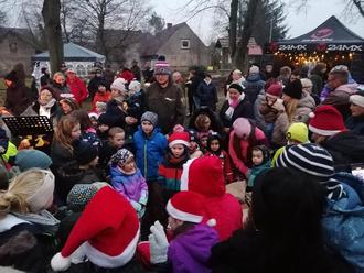 Um 16 Uhr gab es das lang ersehnte Highlight, der Weihnachtsmann war mit seinem Schlitten nach Walddrehna gekommen und hatte für jedes Kind ein Geschenk dabei. Vorher wurden mit Gitarrenbegleitung Weihnachtslieder gesungen.