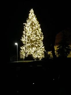 Als Überraschung für das 10. Mal wurde die Beleuchtung des DORF-Weihnachtsbaumes erneuert. Die kann sich wirklich sehen lassen! Alle sind hellauf begeistert über den toll beleuchteten Baum.