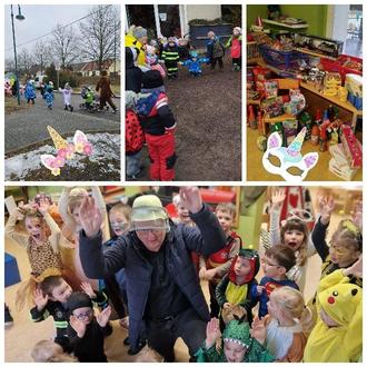 Ein weiteres Highlight war der Besuch unseres Bürgermeisters Herrn Deutschmann, der unserer Einladung folgte und am Rosenmontag beim Faschingsfest dabei war. Die Kinder freuten sich sehr, präsentierten stolz ihre Kostüme und tanzten gemeinsam mit ihm eine fröhliche Polonaise.