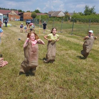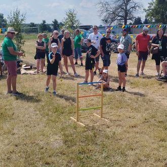 Der zweite Festtag begann mit der Dorfmeisterschaft, bei der sich die Teams Vorstadt, Winkel, Dorf, Dorfende und Nehlsdorf in den Disziplinen Baumstammslalom, Leitergolf, Sackhüpfen, Bierrutsche und bei einem zum Thema Zirkus passenden Quiz die Kräfte maßen. Nach einem spannenden Wettbewerb ging schließlich das Team aus der Vorstadt als glücklicher Sieger hervor. Nach der Siegerehrung gab es im Umfeld des Festzeltes allerlei Aktivitäten und Mitmachangebote der Juko Heideblick, der Naturwacht und der Freiwilligen Feuerwehr Goßmar. Zudem stand eine Hüpfburg bereit und die Kinder konnten sich schminken oder Figuren aus Luftballons modellieren lassen. Außerdem gab es Spiele für Groß und Klein wie Entenangeln, Torwandschießen, Kegeln und Wettnageln, deren Sieger mit interessanten Preisen gekürt wurden. Im Festzelt spielte währenddessen die Nachwuchsgruppe der Musikschule Fröhlich, bei der auch einige Goßmarer Kinder mitwirkten. Zeitgleich zur Kaffeetafel wurden die Gäste dann von den Scheunenmusikanten unterhalten. Für Gänsehaut sorgten die Soloeinlagen vom Goßmarer Gesangstalent Sara Graßmann, die Hits wie Dolly Partons „Jolene“ oder Trude Herrs „Ich will keine Schokolade“ zum Besten gab. Das Festzelt bebte. Nach dem schwungvollen Auftritt der Kapelle folgte noch einmal der Auftritt der Miezen, der dem Kinder- und Sommerfest einen grandiosen Abschluss bescherte.