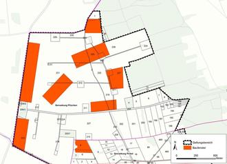 | • | zu Maßnahmen als Ausgleich und Ersatz, inkl. Maßnahmen außerhalb des Geltungsbereichs wie Abriss und Entsiegelung eines Nebengebäudes auf dem Gelände des Kinderheims Weißack sowie Entsiegelung von Betonstraßen in Walddrehna (Pilzheide) mit teilweiser Bepflanzung. |