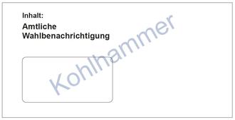 Diesen erhalten Sie in einem gewöhnlichen Briefumschlag, der aber von außen mit der Aufschrift „Inhalt: Amtliche Wahlbenachrichtigung“ gekennzeichnet ist (siehe Muster). Bitte achten Sie in nächster Zeit darauf.